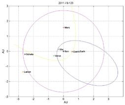 So now along comes Comet Elenin. Let's start with the likely trajectory. On the image, which came from my astronomer friend, it looks like this:
